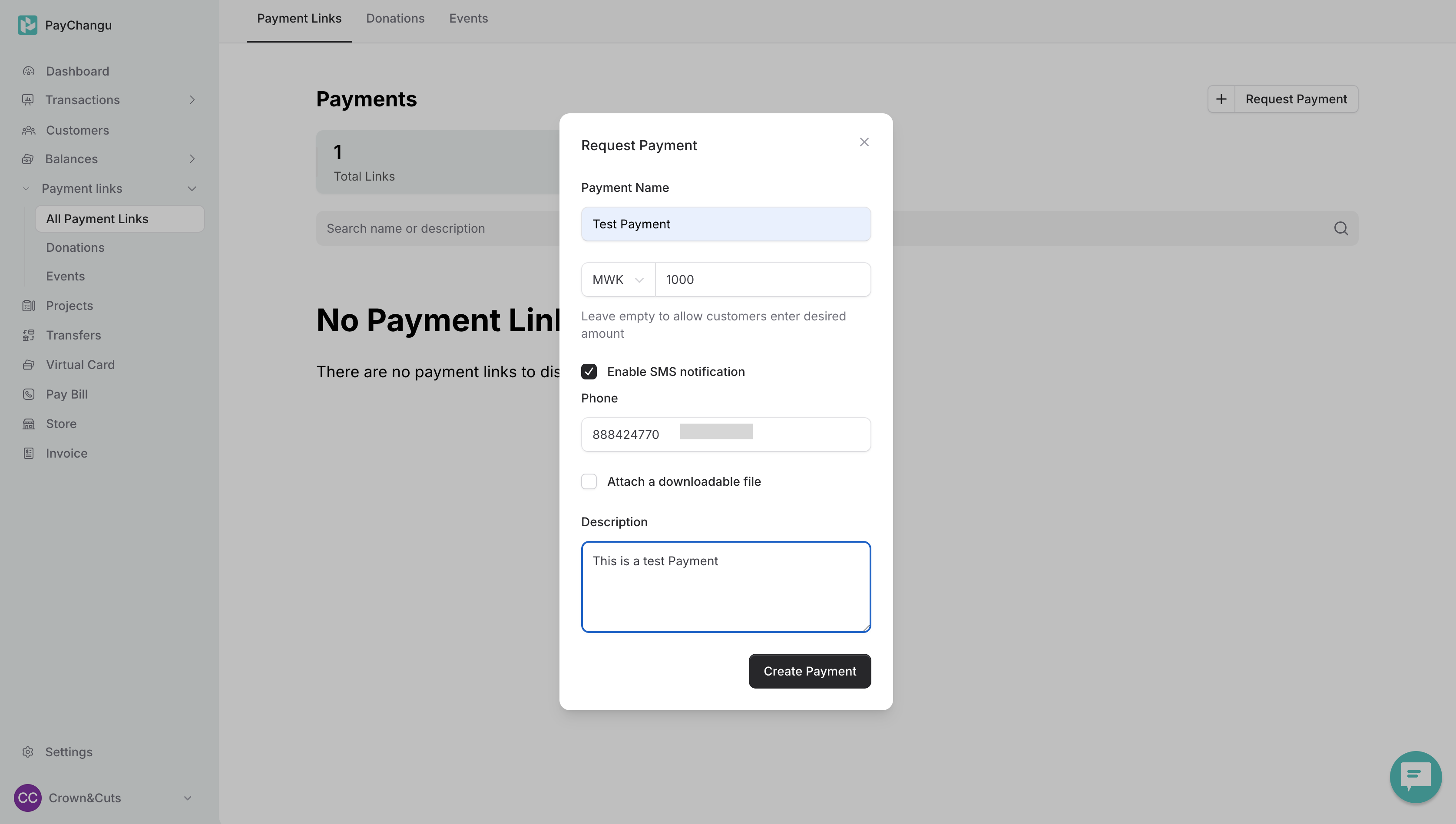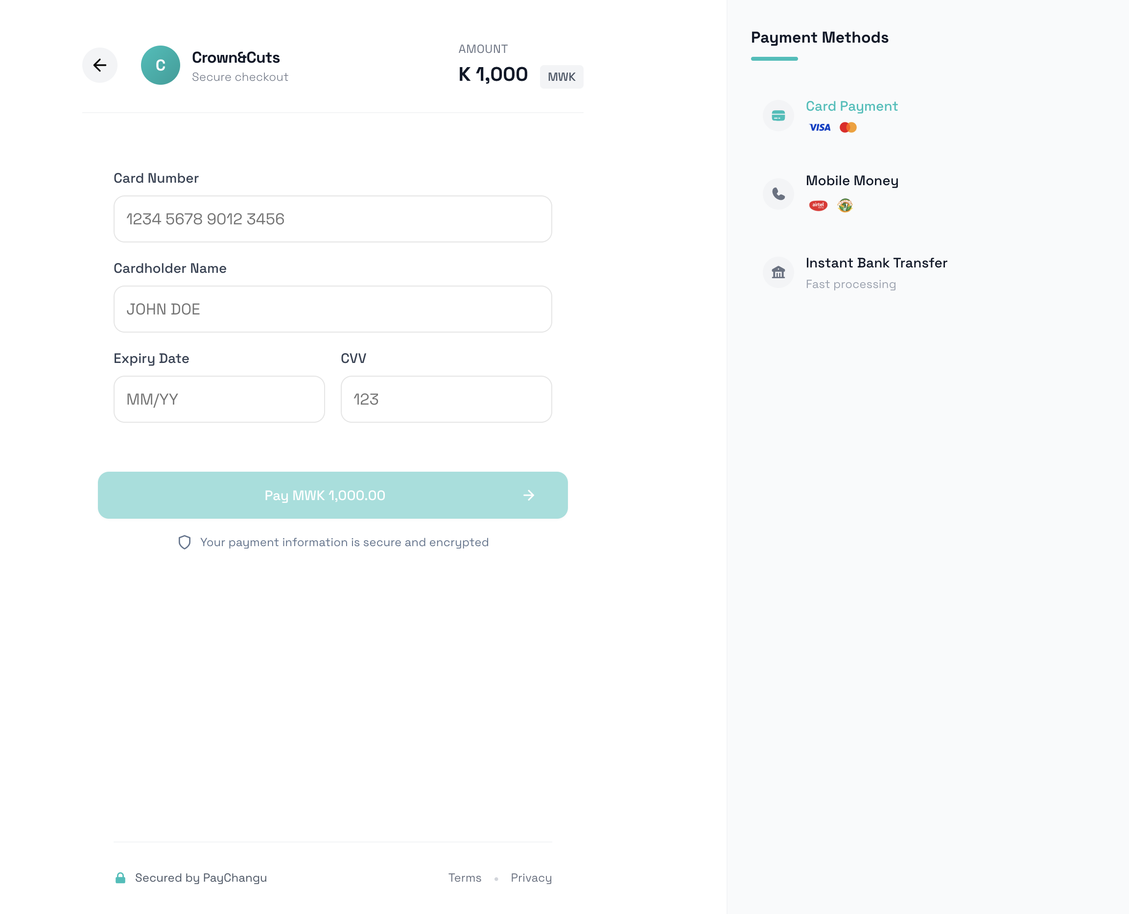 With PayChangu, payment links are quick to create and work across all supported payment methods.