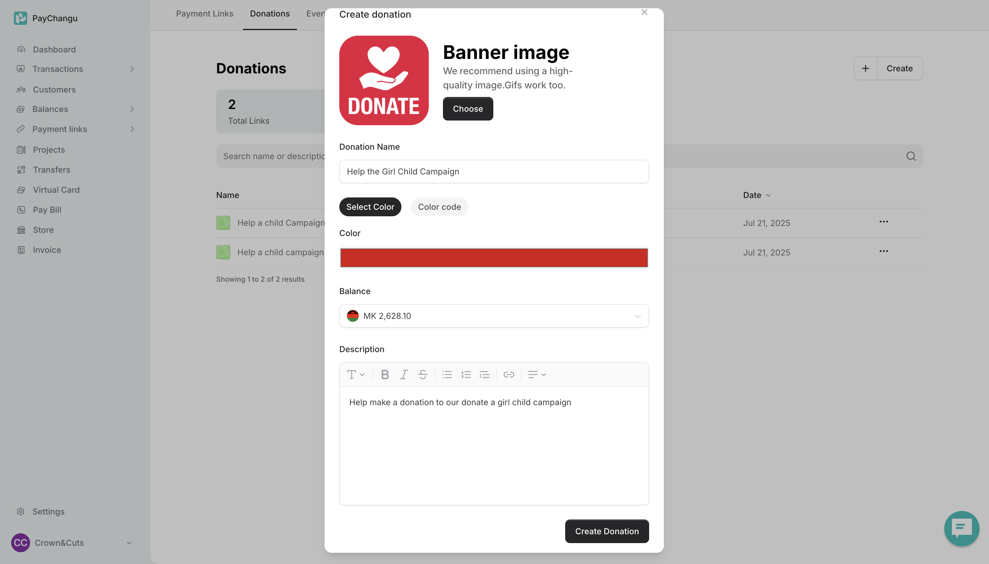Create your first Donation Link on PayChangu today and start collecting donations instantly.