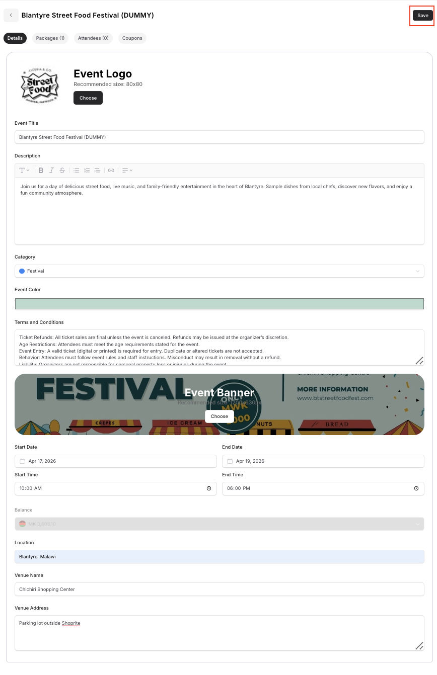After creating an event on PayChangu, you can customize your event page to make it visually appealing, informative, and engaging for attendees. Customizing your event helps attract more ticket buyers and ensures your event looks professional.