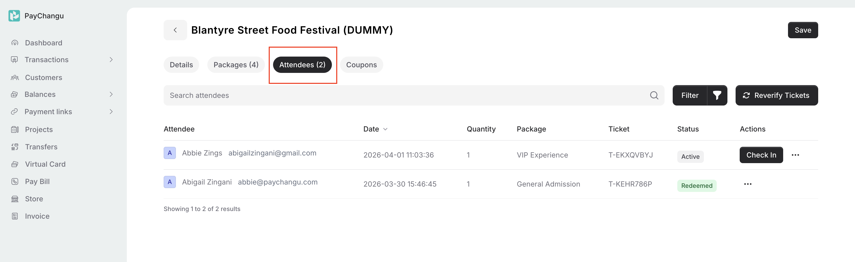 Once your event is live and tickets are being sold, PayChangu allows you to monitor sales, track attendees, and manage ticket activity in real-time. This helps you stay organized and ensures a smooth experience for both you and your attendees.
