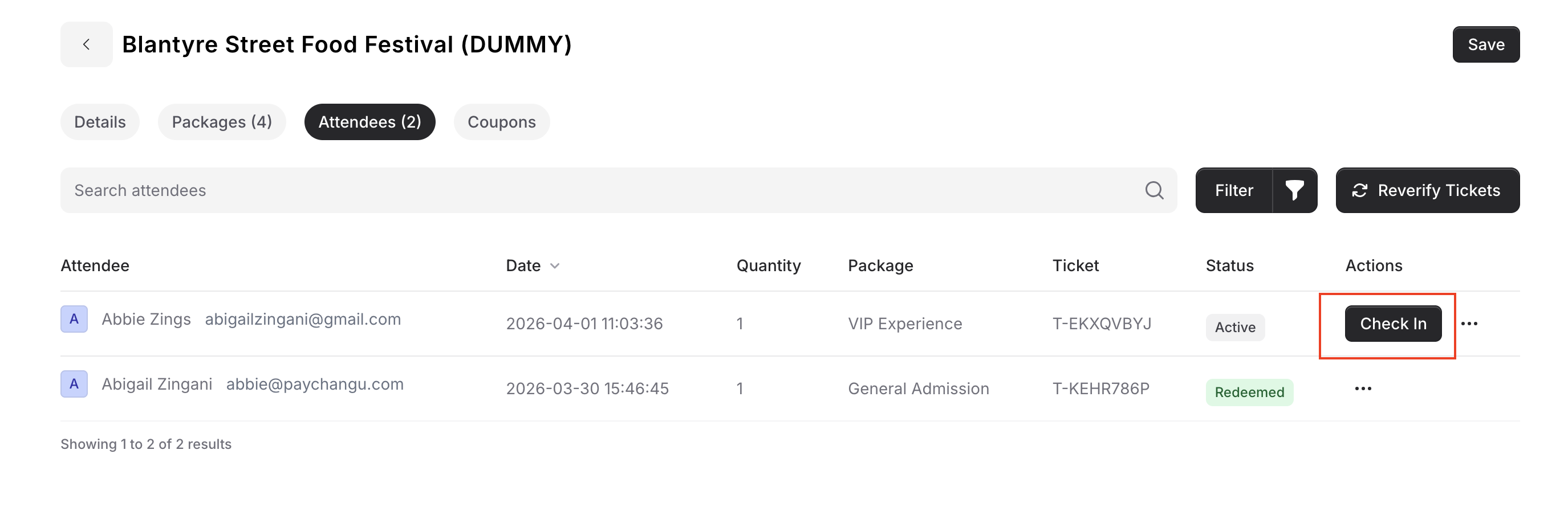 PayChangu makes it easy to check in attendees at your event by scanning or redeeming their tickets. This ensures a smooth entry process, prevents fraud, and helps you track attendance in real-time.