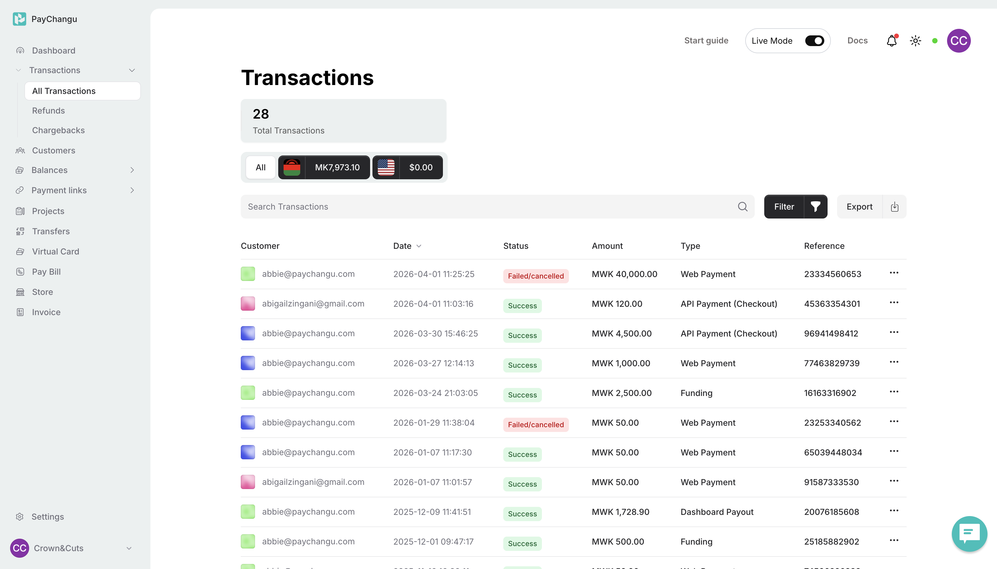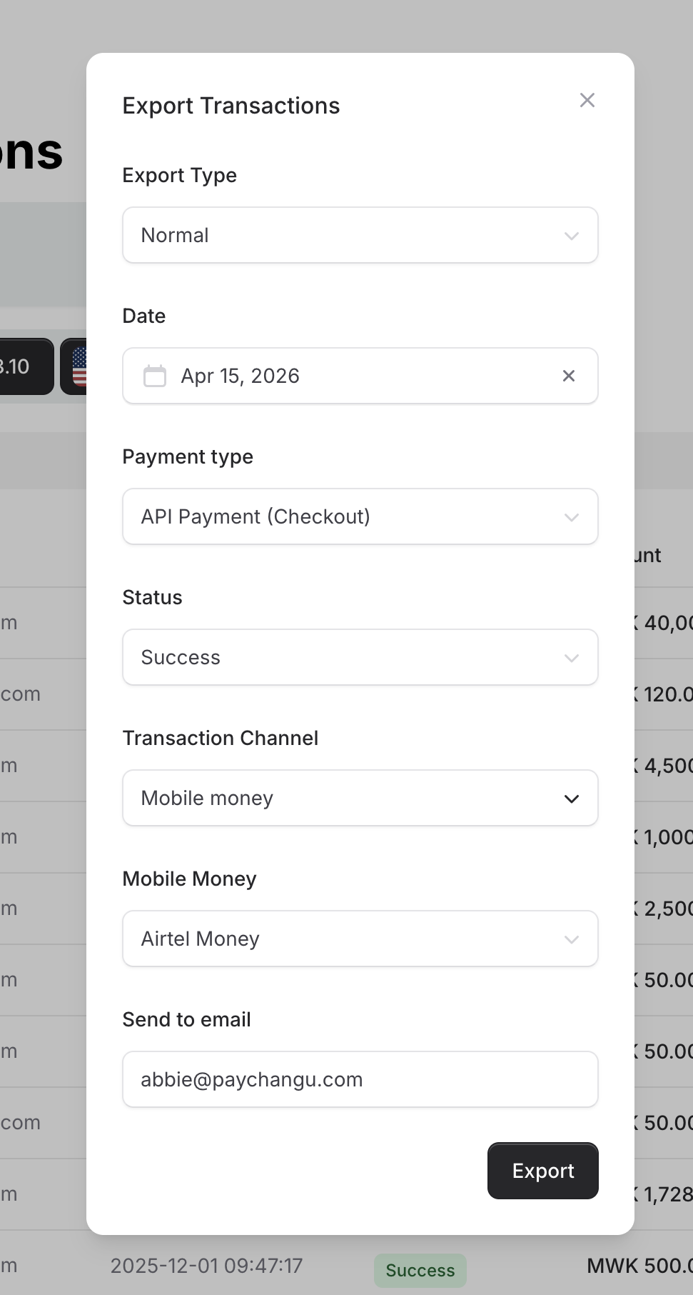PayChangu makes it easy to download your transaction records for reporting, reconciliation, or accounting purposes. With just a few clicks, you can export your data and keep accurate financial records for your business.